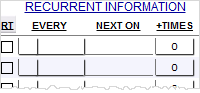 Under the Recurrent Information from the image above, EVERY is the month the task will occur, NEXT ON is the date of the next task, and TIMES is the number of times the task will occur.