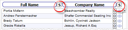 To sort based on the field of the column, click the S button. For example, if you click the S button beside the Company Name field, a pop up will show with options CURRENT and NAME. The list will be sorted based on the current order of the full names of the contacts or based on the name of the company.