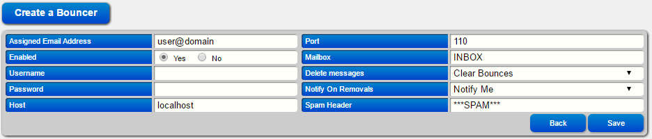 Bouncer fields will then be displayed allowing you enter more bouncer settings.