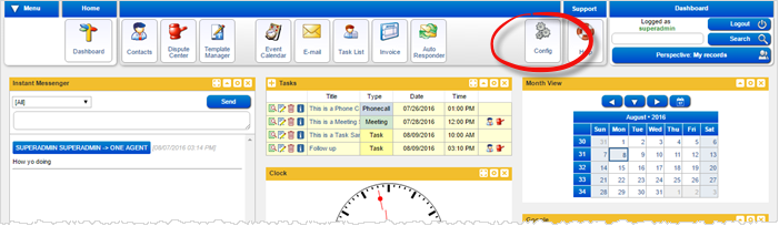 Click the Config button to access the dashboard