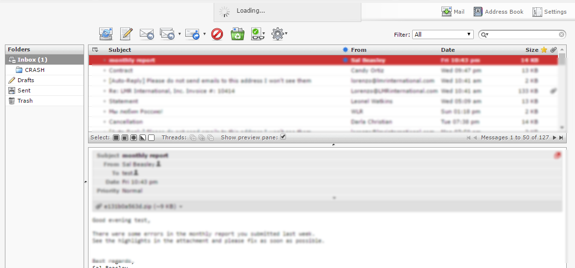 The system has an integrated webmail IMAP client, a browser-based multilingual e-mail client with an application-like user interface. It provides full functionality you expect from an e-mail client, including MIME support, address book, folder manipulation, message searching and spell checking.