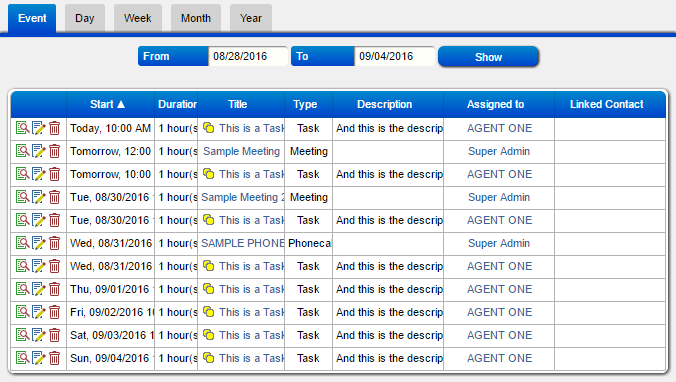 3. These buttons serve as shortcut to the common actins you might want to perform on the events