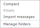 In the footer of the folder list, the Folder actions shows a list folder-related actions when clicked.