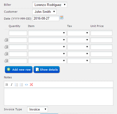 An Itemised Invoice is an invoice that list many different items in the same invoice with optional notes area for each line item - think accounting/legal firms or a grocery store invoice