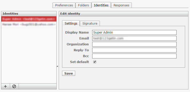 To access, click the Settings button of the selected email account and go to the Identities tab.