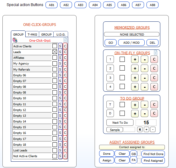 There are six (6) groups that can be managed in the group area: one-click group, memorize group, on-the-fly group, to-do group, agent assigned group, and special action group