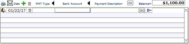 Below is the PAYMENT AREA inside the Invoice System where the payment to an invoice is done. The fields for payment are the date, the payment type, the bank account, and the payment description.