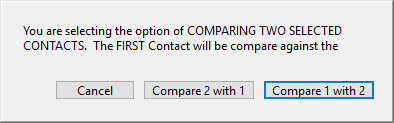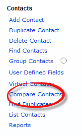 Important Note To Remember Only two records or contacts can be compared at any one time. In the case that you have more than two records selected and you want to compare, you will to have to omit the other records momentarily. To do this click the OMIT button or through the List Contacts screen.